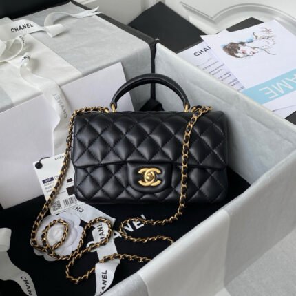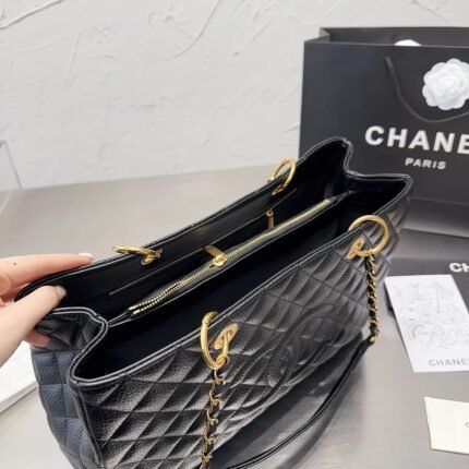 Chanel chain crossbody bag diamond and litchi cowhide Black