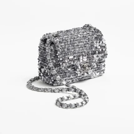 Chanel cf Square Fat 1115 sheepskin leather grey