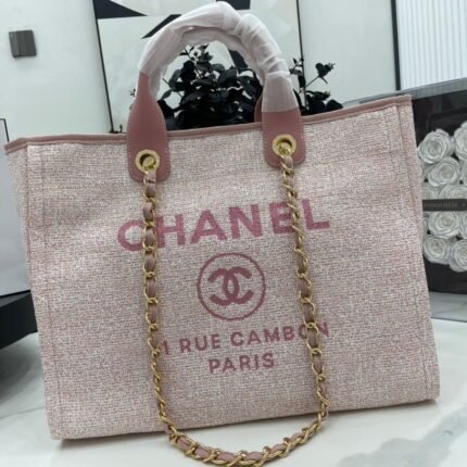 Chanel canvas tote bag Pink light gold