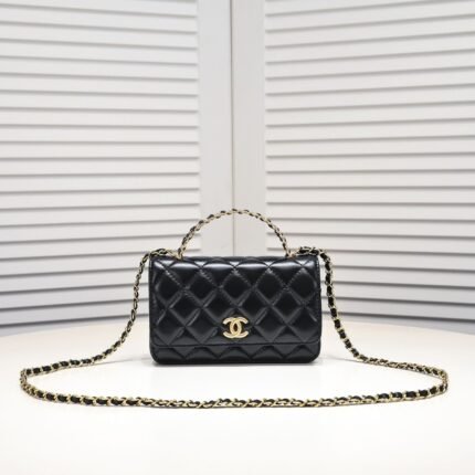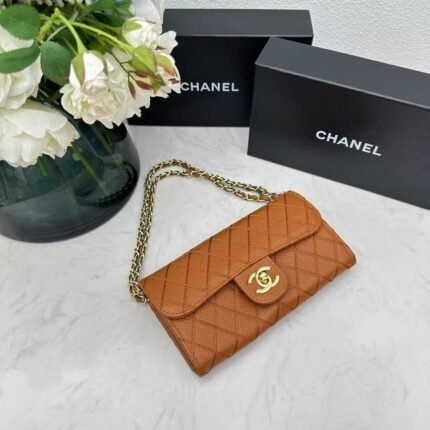Chanel chain crossbody bag diamond and litchi cowhide Brown