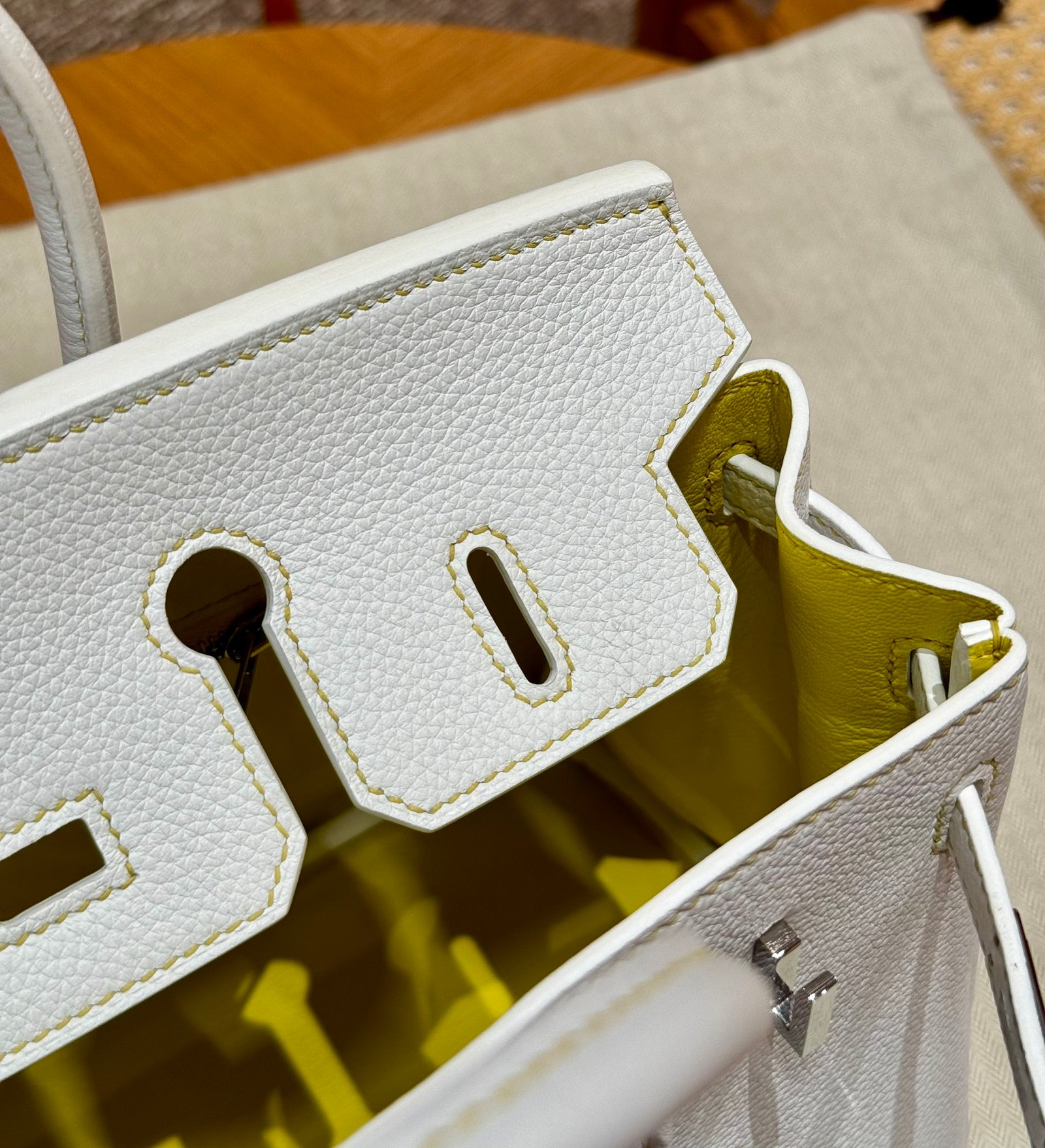 Style:Birkin Colour:01/Blanc/9R/Lime Size:25*20*13cm Leather:Togo From France Hardware:sliver