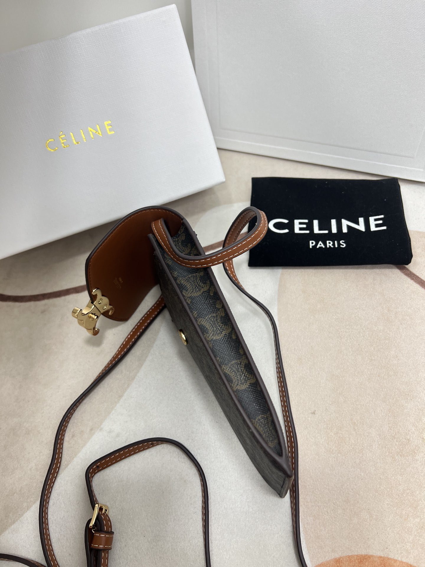 CELINE Mobile phone bag with leather strap Size: 10*2*19cm