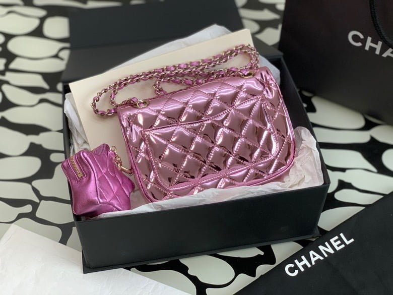24c pentacle twin chain bag. mirror material is really quite eye-catching 😍 gold. silver. pink just like Sailor Moon bag. with light. sweet and cool coexist. 💓 This five-pointed star pendant golden chain bag. just like a small cf bag with a small star ⭐️ gold is the high-profile existence of a few bags. resplenent. from the bag out of the moment can really feel the existence of golden glory! size: 20*15*4cm99322