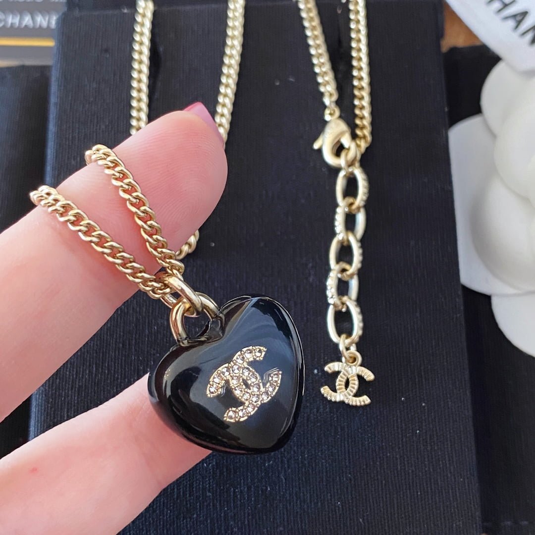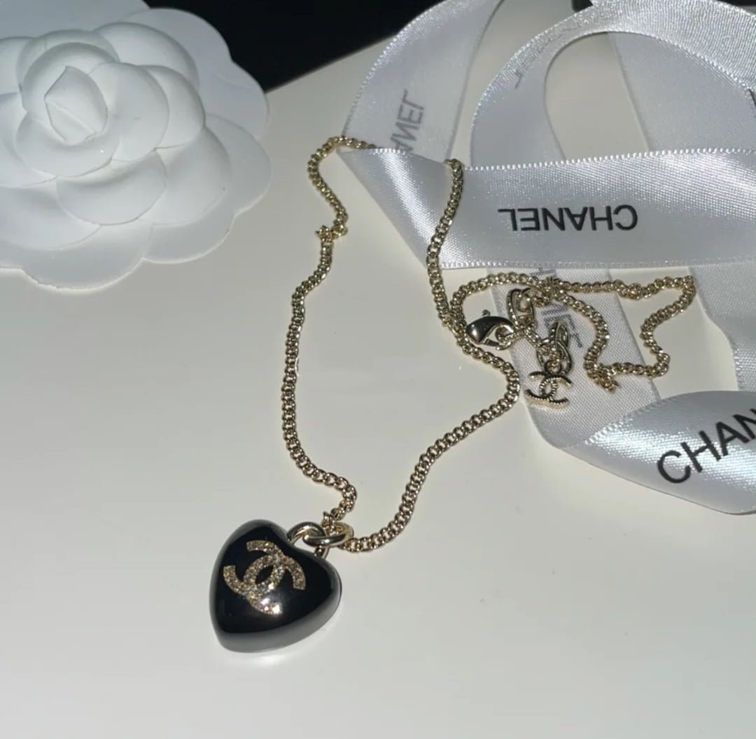 Chanel black heart necklace. vintage black heart shape. super eye-catching black heart. the upper body is very good-looking and distinctive. genuine consistent brass material