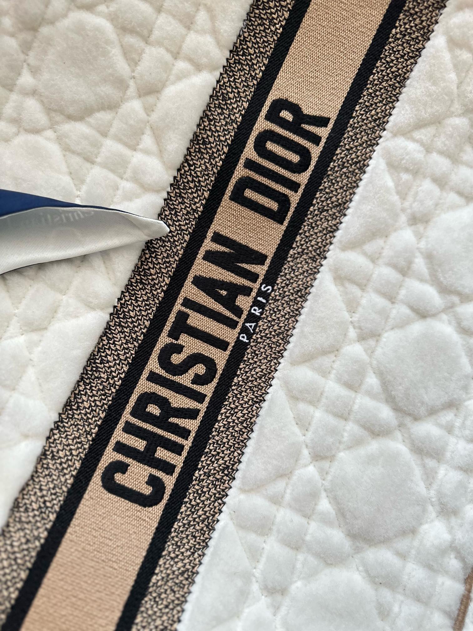 DIOR / LARGE DIOR BOOK TOTE Beige and Blue Macrocannage Embroidery (42 x 35 x 18.5 cm)