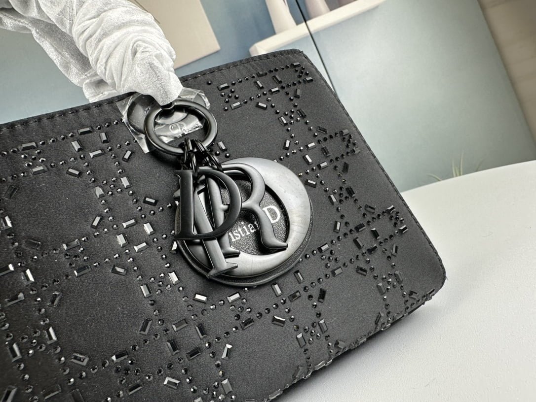 Home BAGS Dior Dior satin diamond-encrusted Princess Diana bag black 2320 size: 26*13*6cm