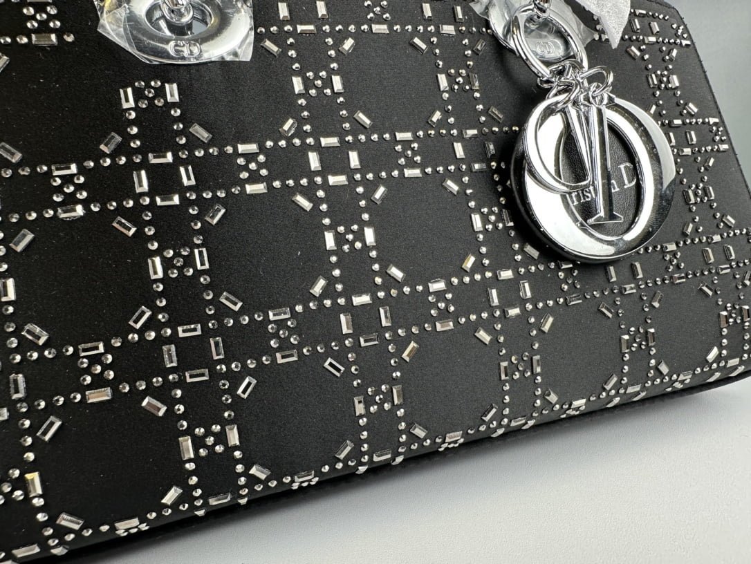 Horizontal hot diamond Dior@Satin diamonded Diana bag 💗 silk flashes different colors under different angles of light 😘. the three-dimensional sense of the transition of light and dark makes the satin a higher grade 💫 ubiquitous exposure rate. Internet celebrity hand a 🎀 size 26x13x6. model No. 2320