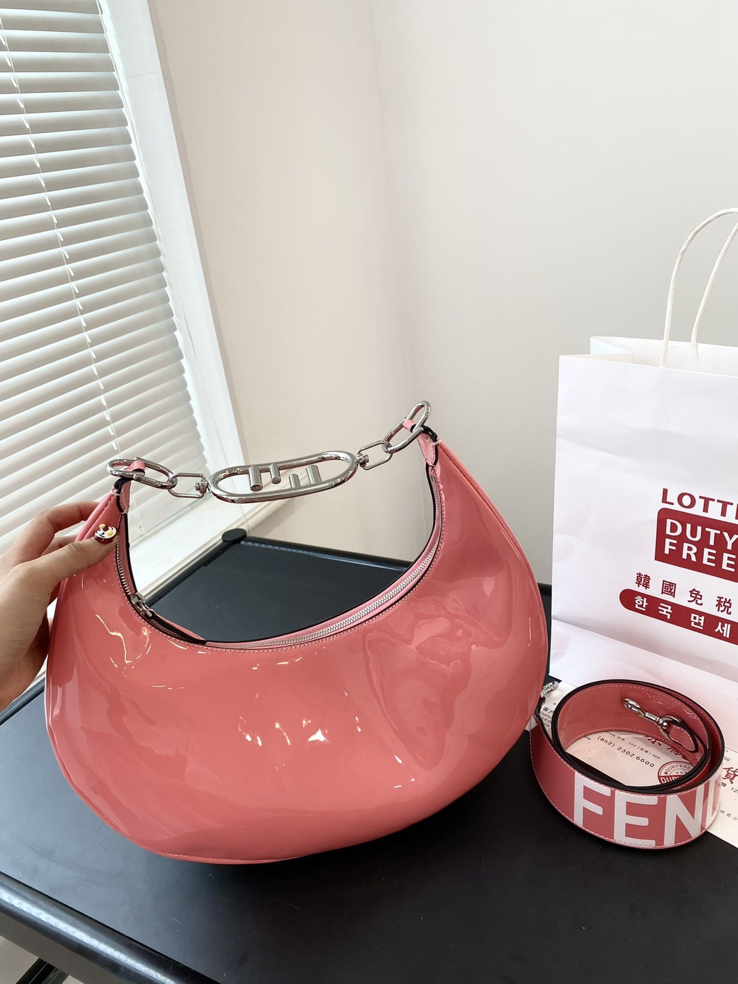Home BAGS Fendi FENDI Patent leather half moon bag Pink Size: 34*16cm