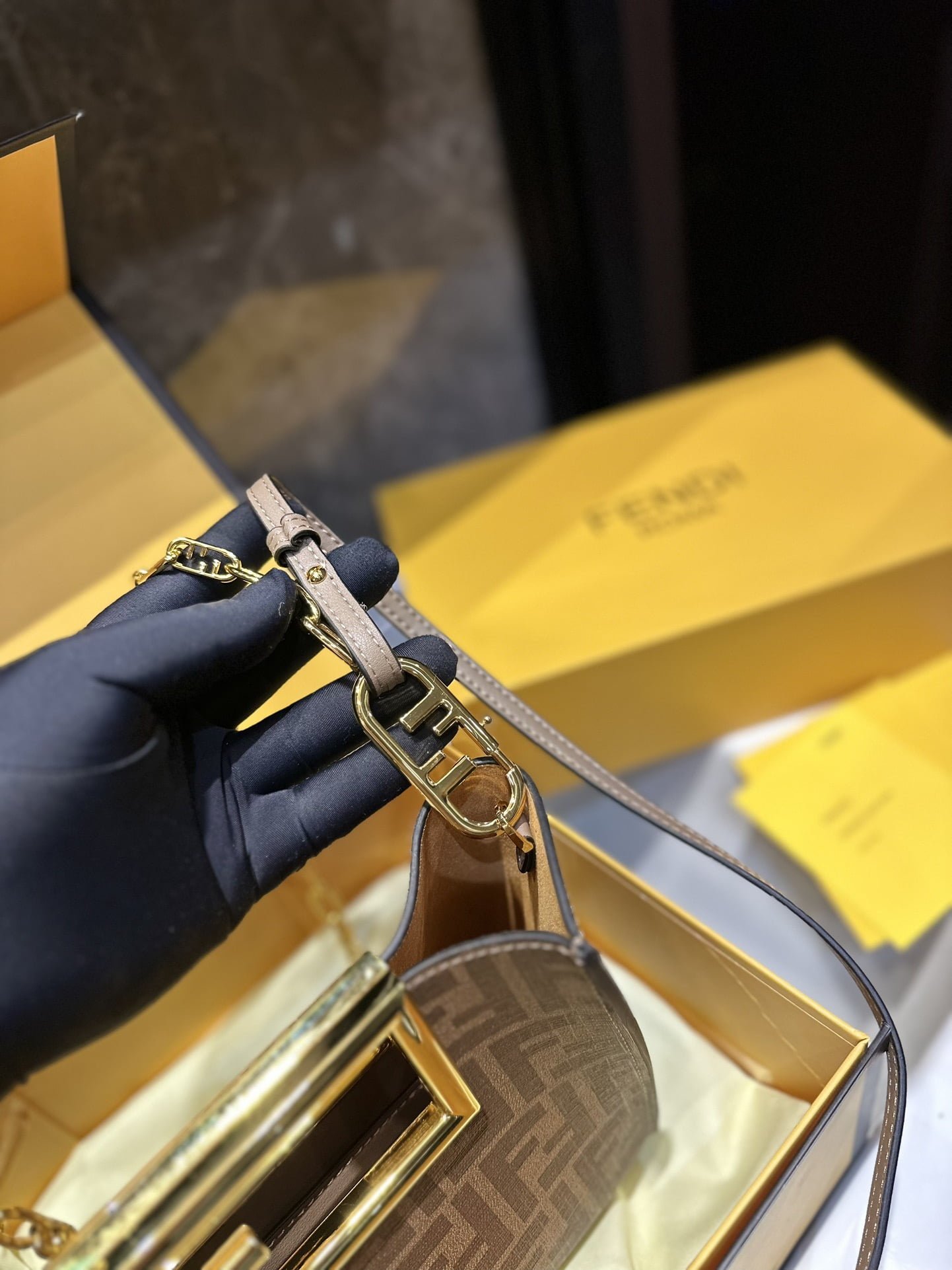 fendi way 2021 new double f button handbag the most classic size. the most classic double f button. resistant to calfskin material. simple atmosphere design is fendi the most beautiful bag is not too much j size 20x9x17cm