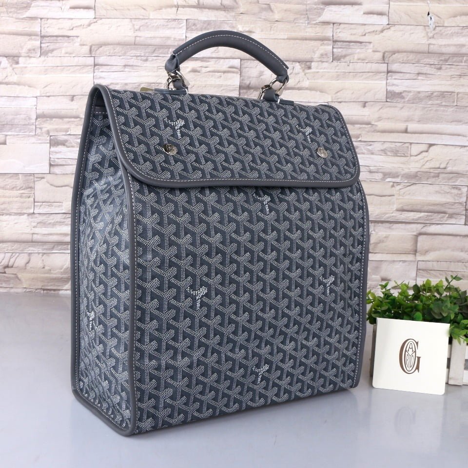 GOYARD new backpack carbon gray. explosive backpack. men and women the same. foldable. shoulder strap detachable. when the bag can also be. with leather. size: bottom length 32* width 14* height 37cm. shoulder strap adjustable!