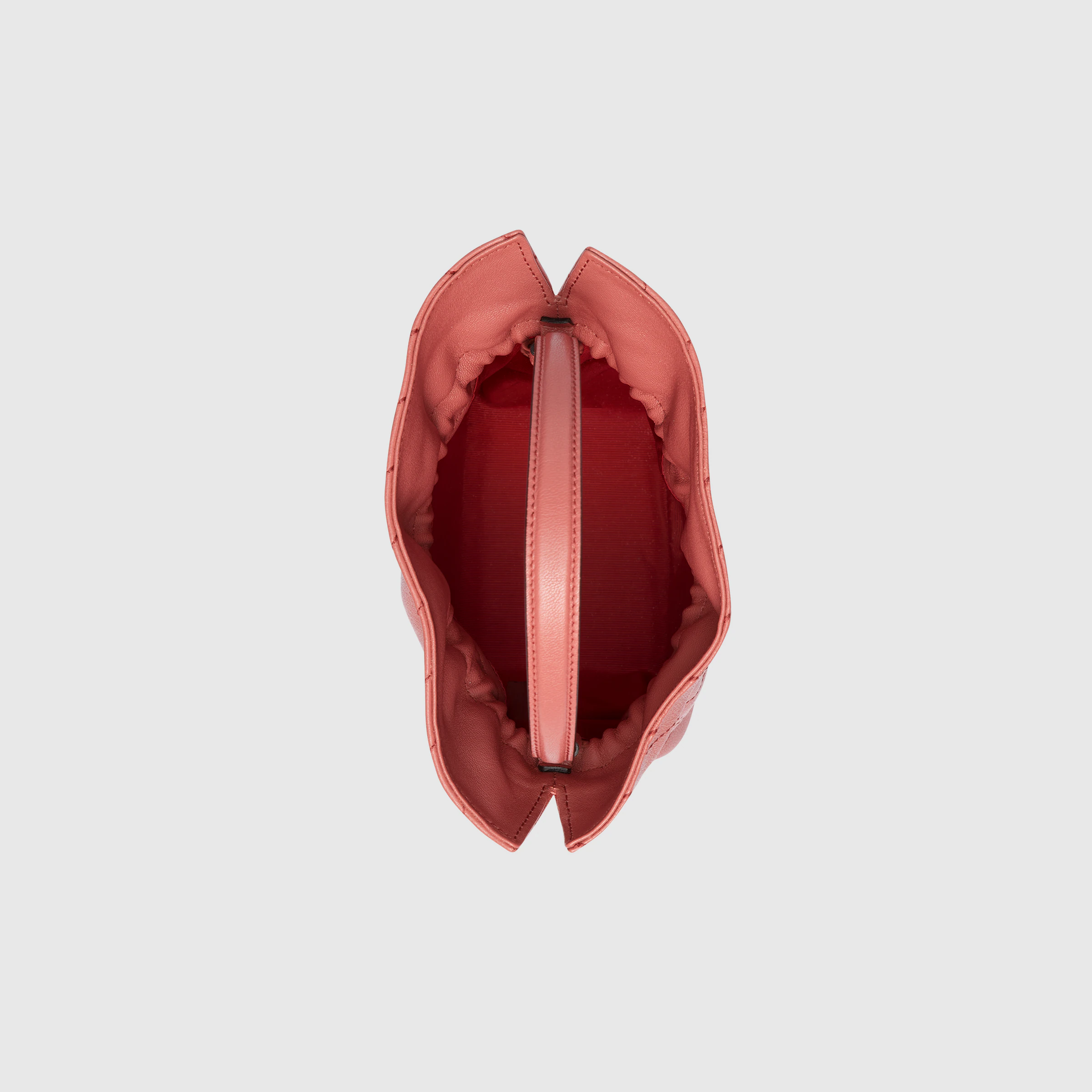 A bold motif of the House. the Gucci Blondie continues to exude subtle style. thanks to its tonal leather appearance. Formed from a rounded geometric version of the Interlocking G. the line exemplifies Gucci’s contemporary design. The logo detail defines this mini bucket bag in pink leather with tassel details.