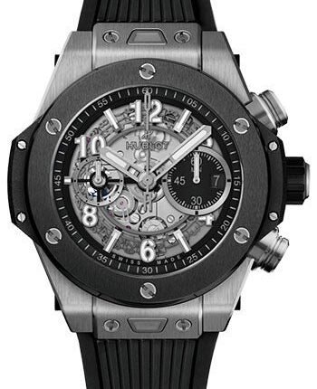 Hublot Big Bang Unico Titanium Ceramic, 44mm watch, brushed titanium case with polished finished beveled corners, Reference 421.NM.1170.RX. Case sides