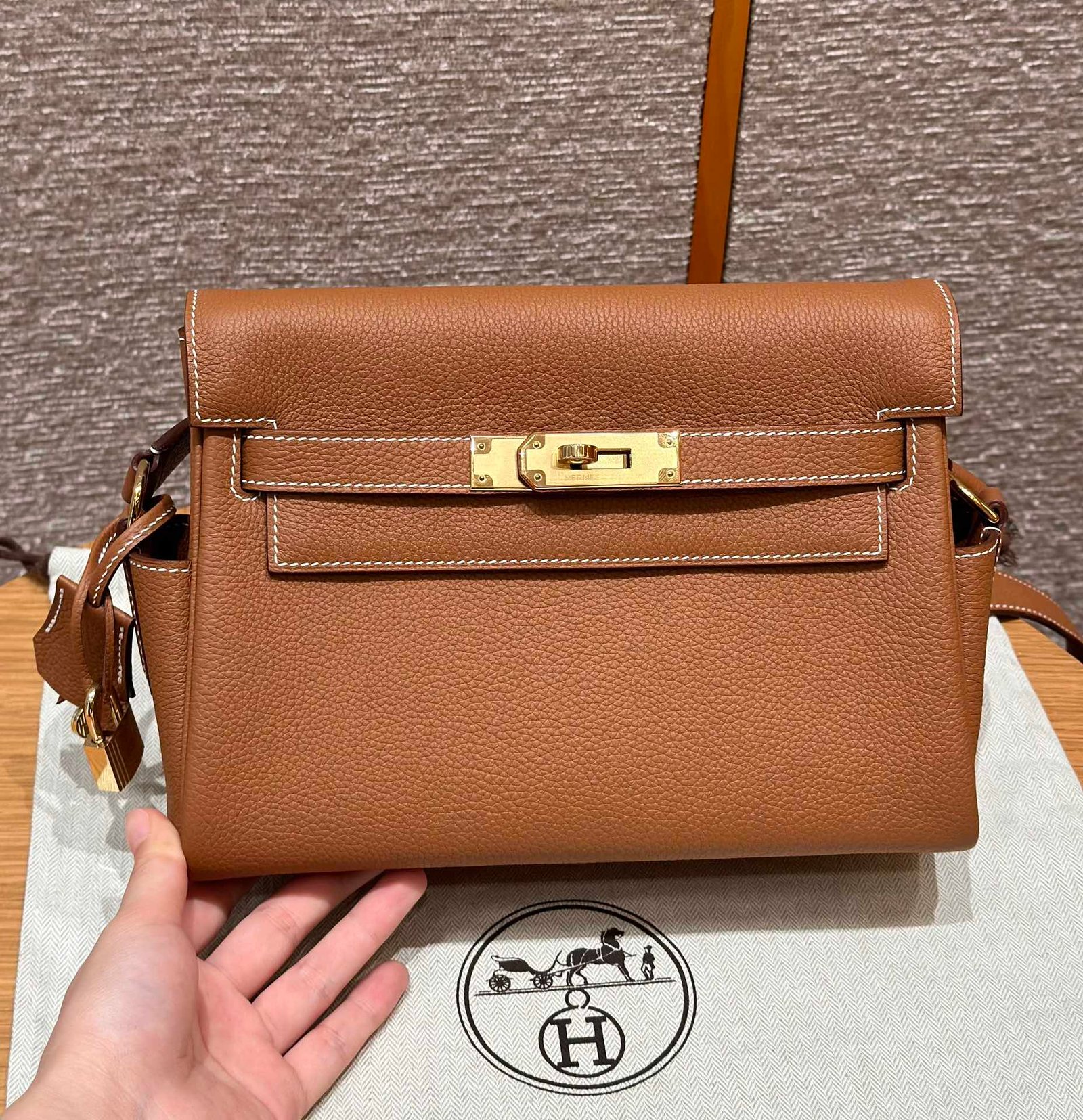 Hermès Kelly 𝐓𝐨𝐠𝐨 Calf Sliver hardware Golden brown size: 𝟮𝟱𝐶𝑚/ 𝟮𝟴𝐶𝑚
