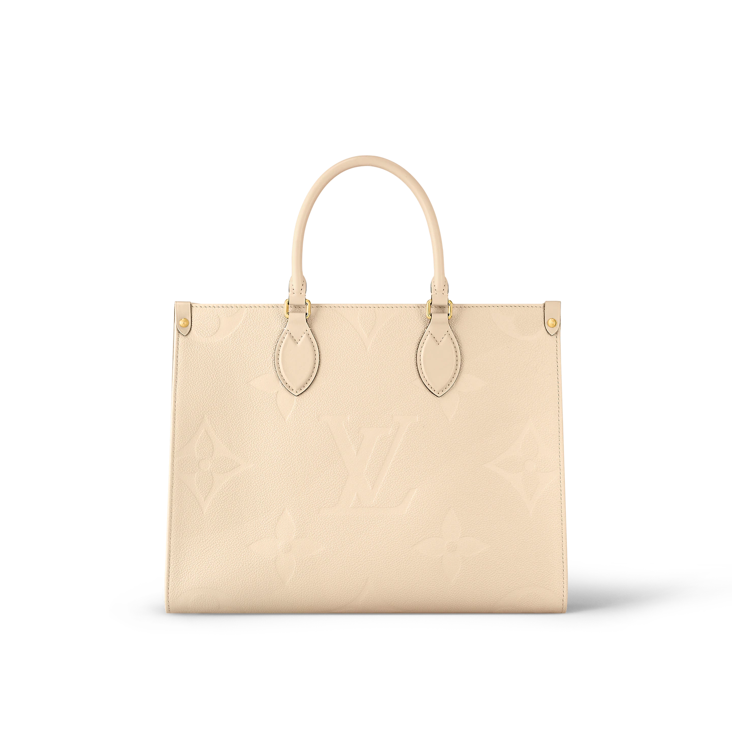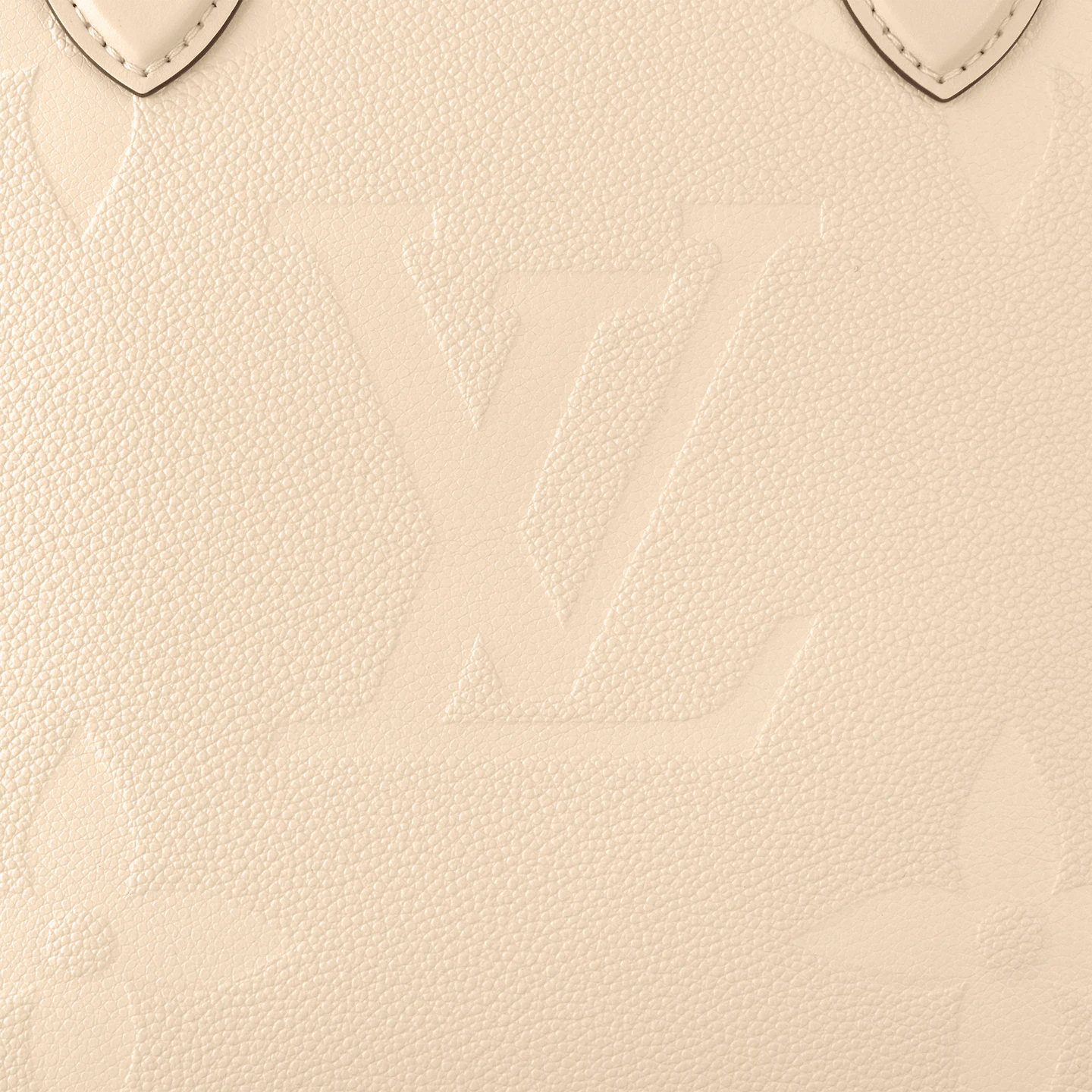 The OnTheGo MM tote now comes in cream-color Monogram Empreinte leather with a matching microfiber lining. The Monogram embossed into the grained leather brings a subtle elegance to the bag’s boxy shape. The roomy interior can easily fit a laptop while rolled-leather top handles and two long shoulder straps give carrying options.