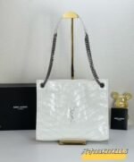 NIKI Shopping Bag Pleated Vintage Oil waxed leather Saint Laurent Tote Bag Upholstered leather-covered YSL initial shoulder Bag 100% calfskin Antique Silver Metal hardware Rolework lining magnetic buckle inside with a zipper pocket