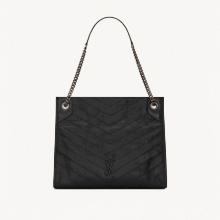 YSL NIKI Wrinkled retro oil wax skin tote bag black